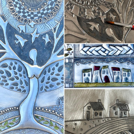 I am Elitia Hart, a South African born metal crafter now living in Calgary, Canada. Having worked with and explored a variety of artistic materials and techniques, I found my true medium of expression when introduced to metal sheet embossing in 1999.